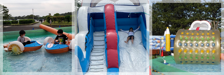 ビッグローラーをはじめとしたウォーターアクティビティが体験できるほか、エア遊具も併設します。水の上を走ったり、転がったり、是非体験してみては。