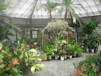 家庭でも育てることができる熱帯植物や観葉植物を中心に展示しています。きれいな花を咲かせるもの、変わった形の葉をもつものなどいろいろな植物を見ることができます。公園センターからも入室できます。